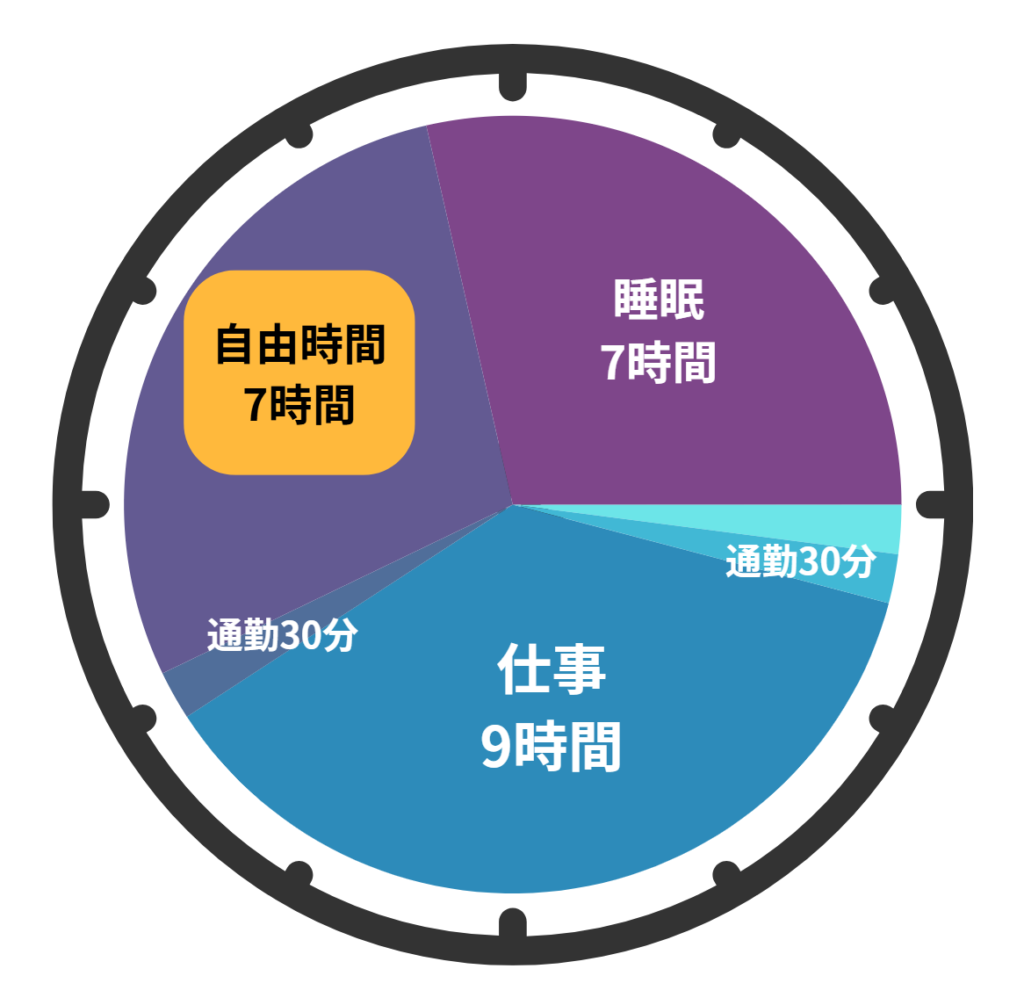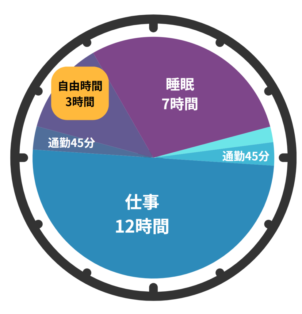 - 通勤時間と仕事で1日約13時間以上拘束