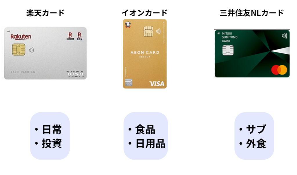 僕は、3つのカードを、以下の図のように分けています。