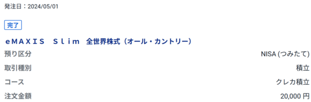 とりあえずクレカ積立だけ設定して、