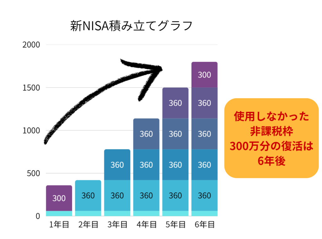 使用しなかった非課税枠の300万円分は、6年後にしか投資できません。
