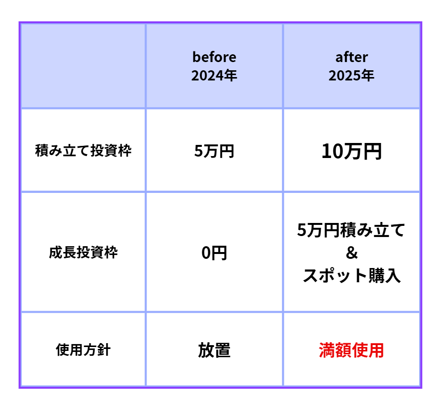 2025年分の新NISA枠は、